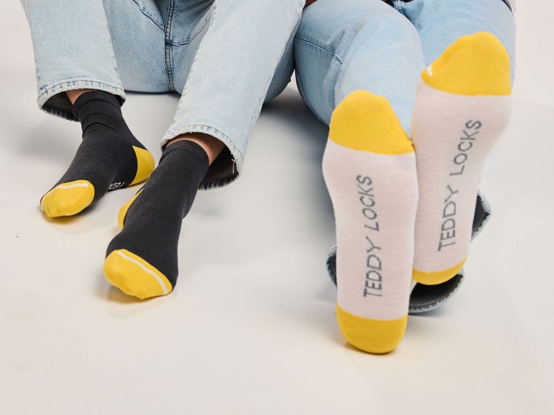 So, thanks to Teddy Locks' signature yellow heel & toe - you'll pair your socks faster & you won't lose one!