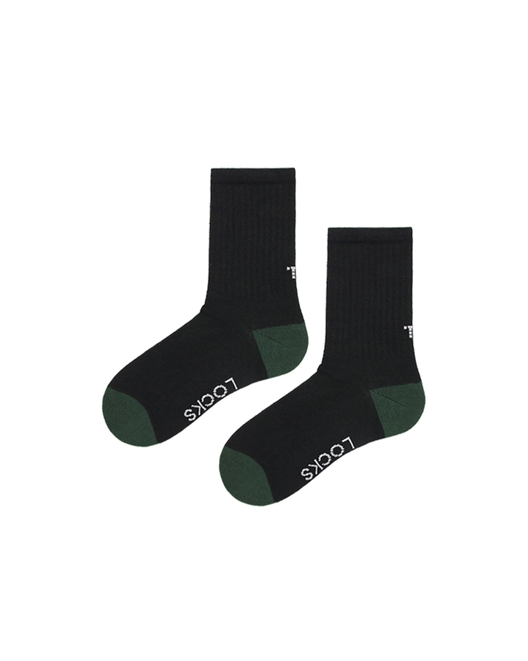 Black ribbed crew socks with evergreen heel and toe accents