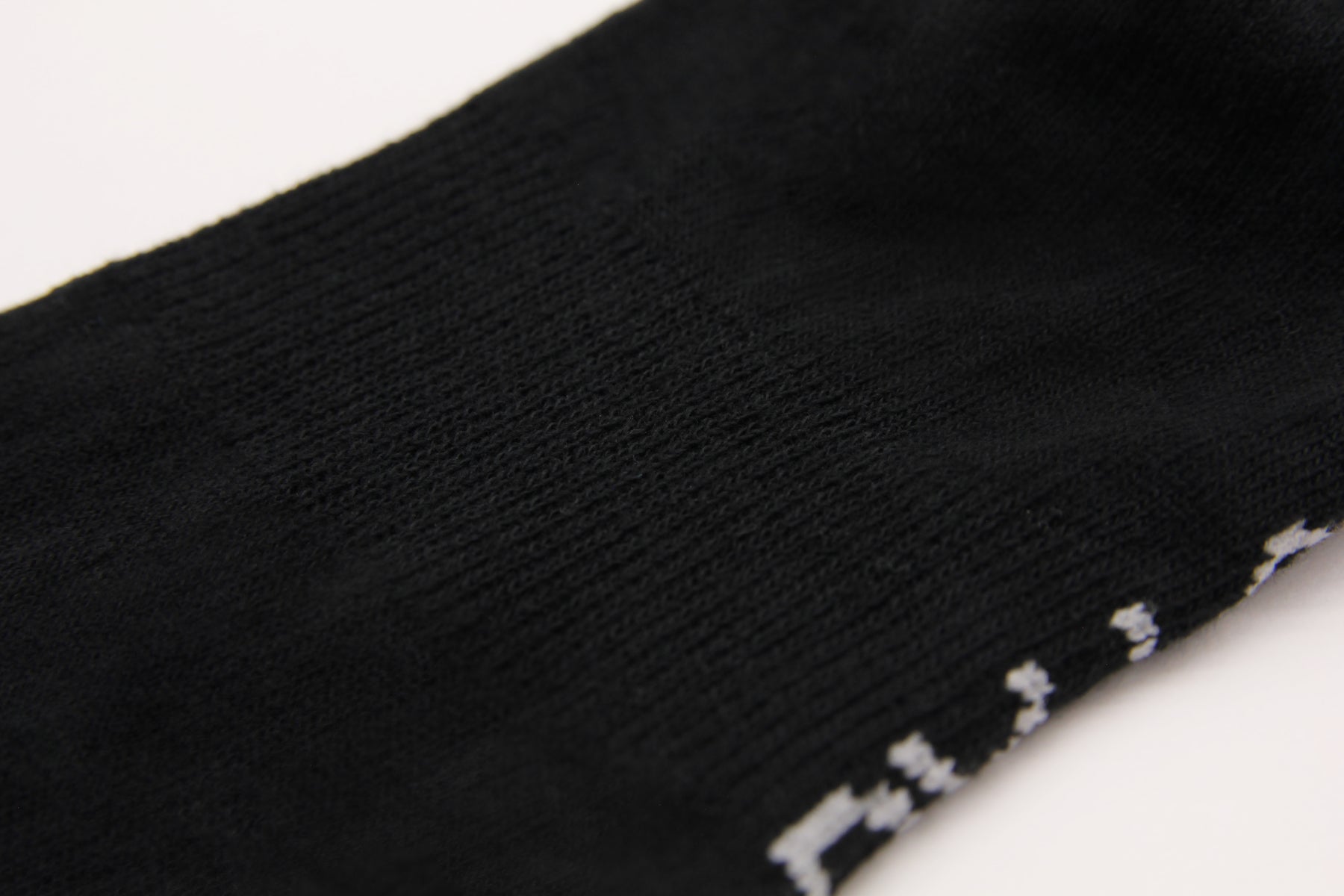 Close-up of the arch support in the plain black ribbed crew socks